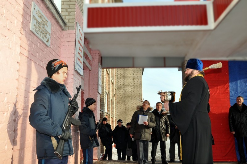 Началась она с яркого выступления хора кадет. Директор школы Рубан П.А в своем выступлении подчеркнул значимость события для образовательного учреждения, что инициатива увековечивания памяти Героя-учителя - это дань памяти всем Героям, приобщение молодежи к истокам героизма, воспитание чувства гордости, уважения к старшему поколению.