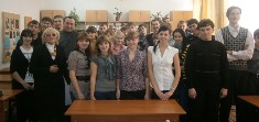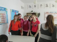 В одной из аудиторий перед презентацией учебного заведения классный руководитель Лысенко Н.Г. и ее ученики 10 б класса.